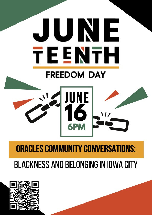 As part of the Johnson County Juneteenth Commemoration, the Oracles of Iowa City project will be hosting a community conversation on Blackness and Belonging in Iowa City, generously hosted by Dream City.
