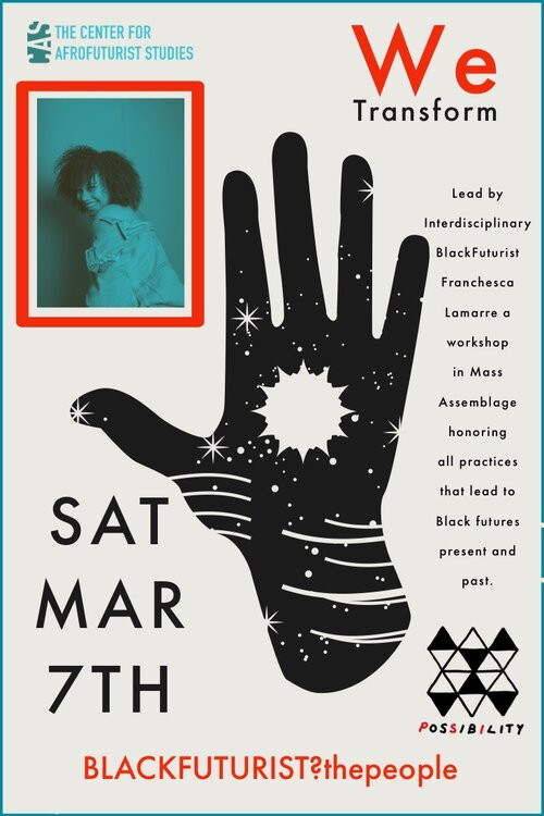 Led by Interdisciplinary BlackFuturist Franchesca Lamarre, a workshop in Mass Assemblage honoring all practices that lead to Black futures past and present.